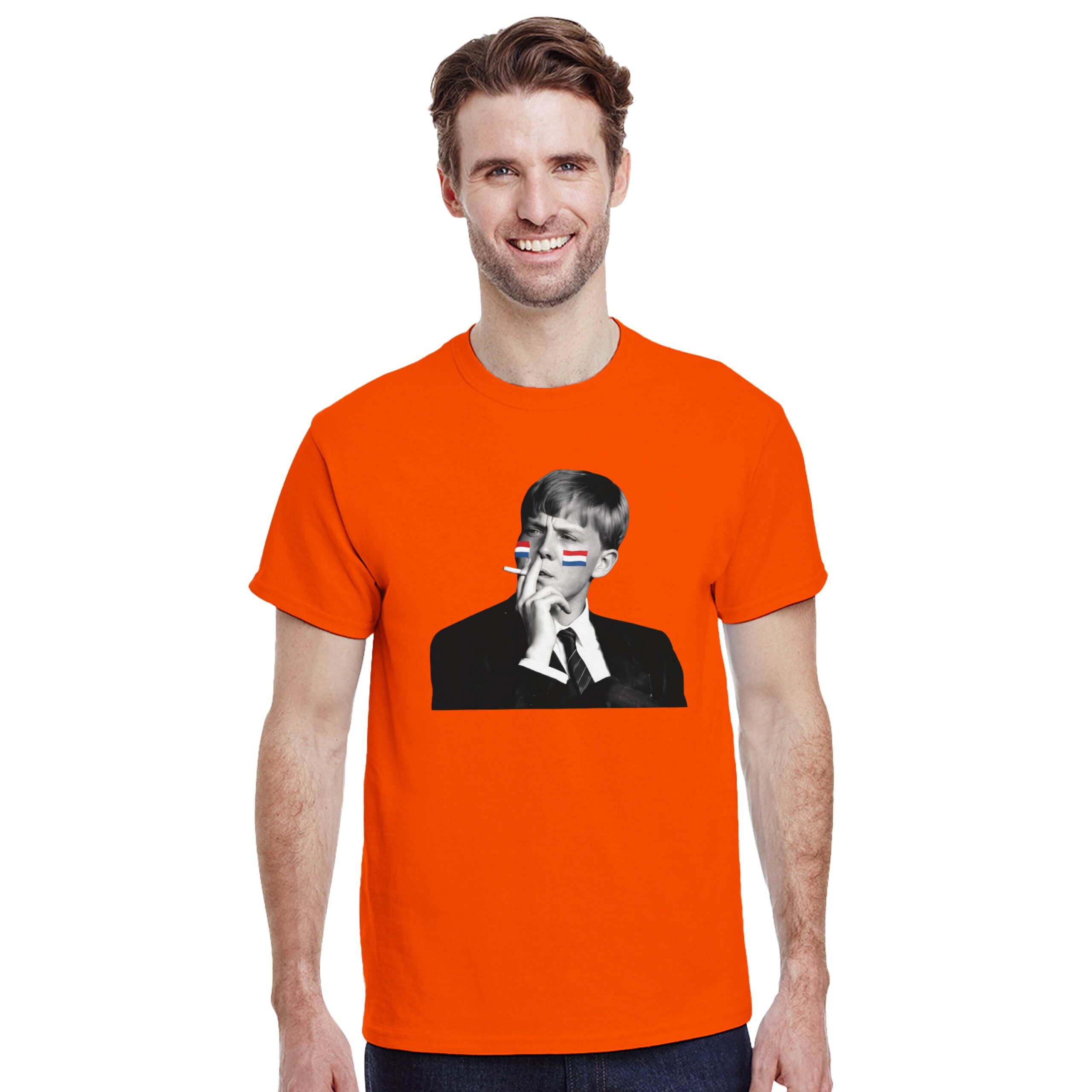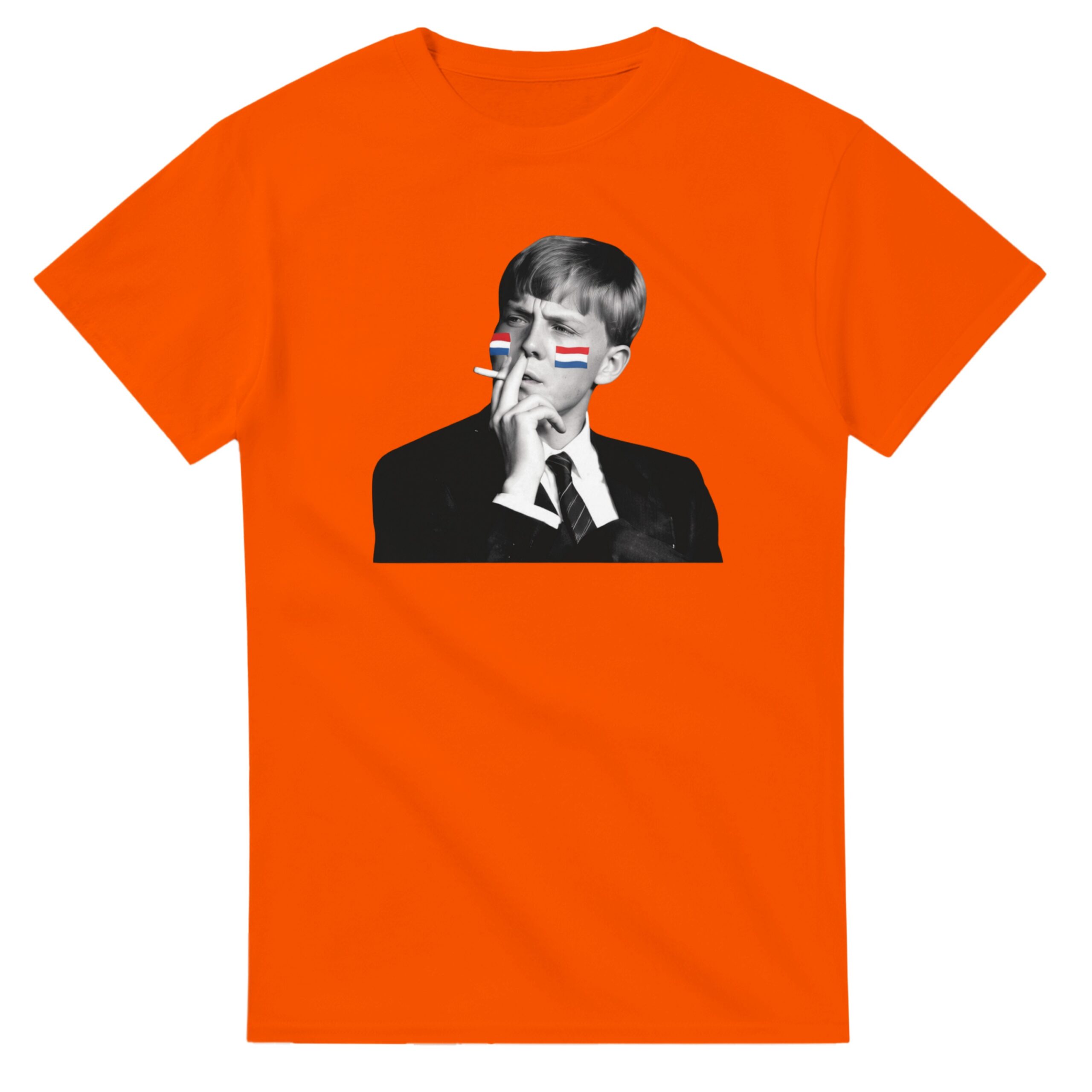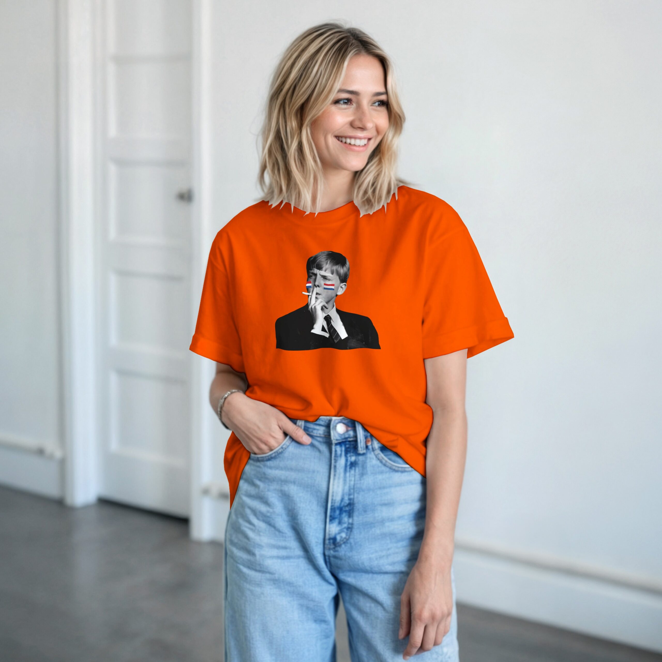 Maak een statement zonder รฉรฉn woord te zeggen. Dit unieke T-shirt combineert minimalistisch design met een krachtige uitstraling โ€“ perfect voor Koningsdag, festivals of gewoon als daily fit met karakter.