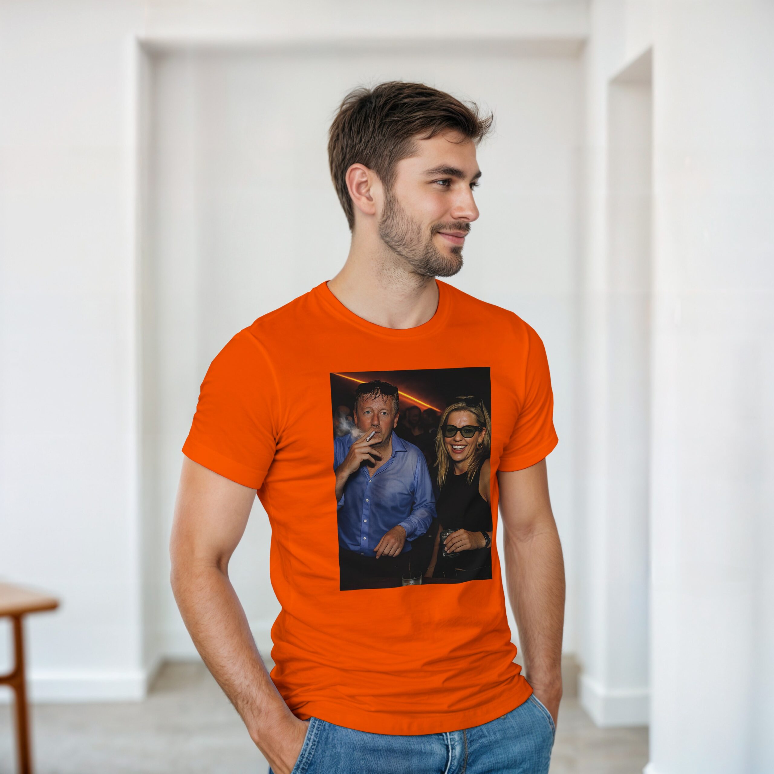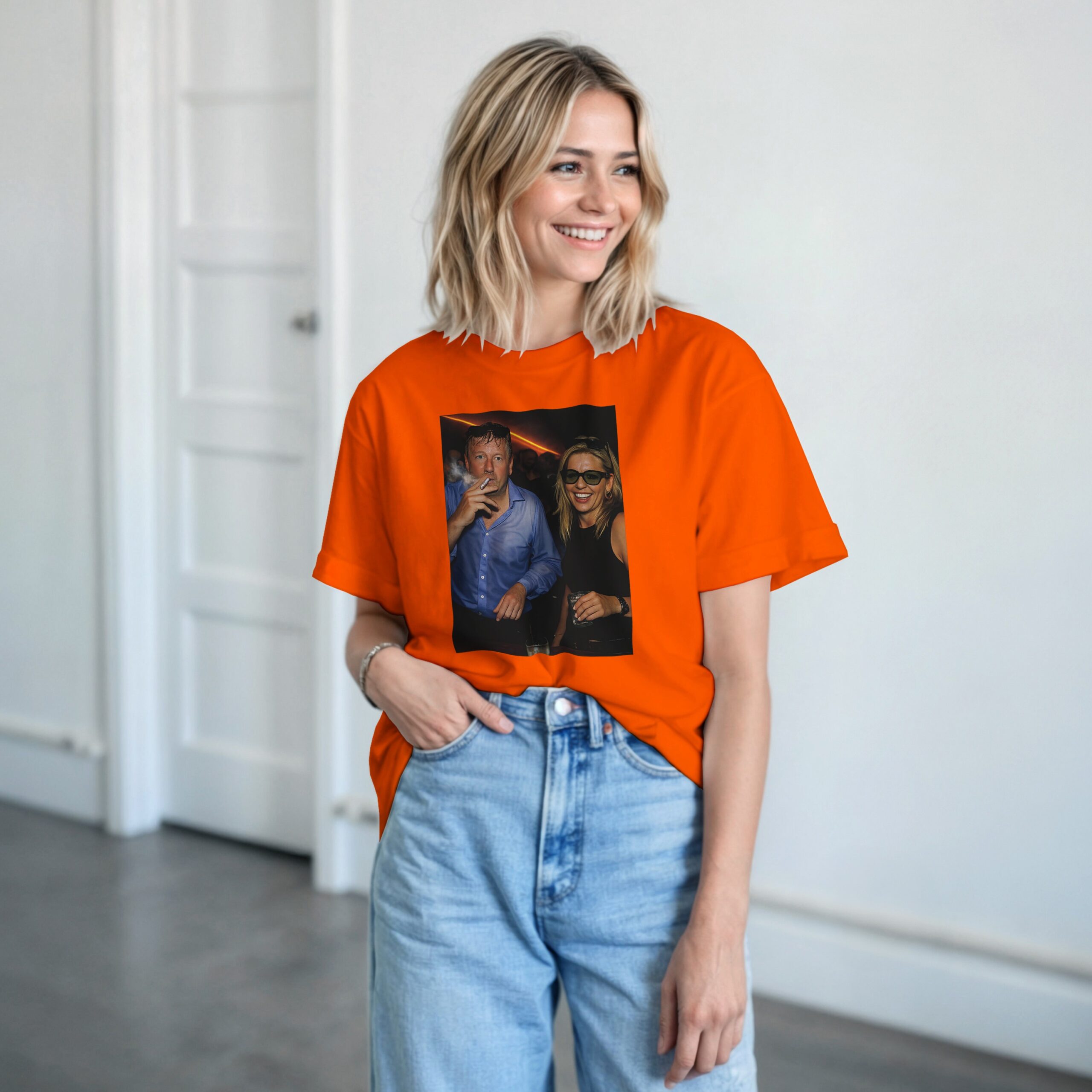 Dit oranje T-shirt met Willem & Máxima print is gemaakt voor iedereen die Koningsdag serieus neemt… maar wel met een glimlach 😉